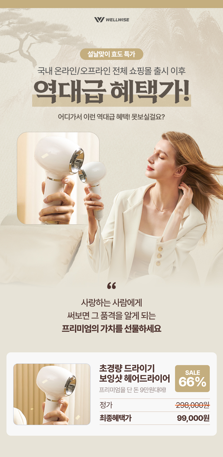 [비밀특가] 웰와이즈 보잉샷 헤어 드라이기 (팔이 안 아픈 초경량&3분컷 초강력 바람)